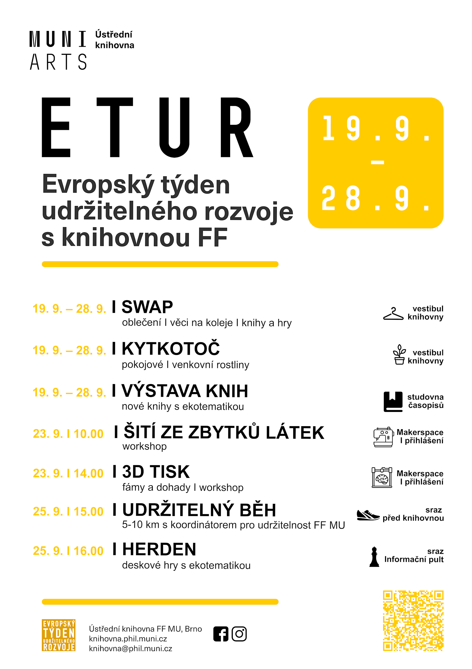 Rádi vás uvidíme v (dlouhém) týdnu od 19. do 28. září. Po celou dobu můžete přinášet a odnášet věci a rostliny na vyhrazené místo ve vestibulu knihovny a vybírat knihy z tematické výstavky. V knihovním Makerspace vás v úterý 23. budou čekat workshopy na šití a 3D tisk, na které je ovšem potřeba se přihlásit. Ve čtvrtek 25. si můžete bez přihlášení přijít zaběhat nebo zahrát deskovku.